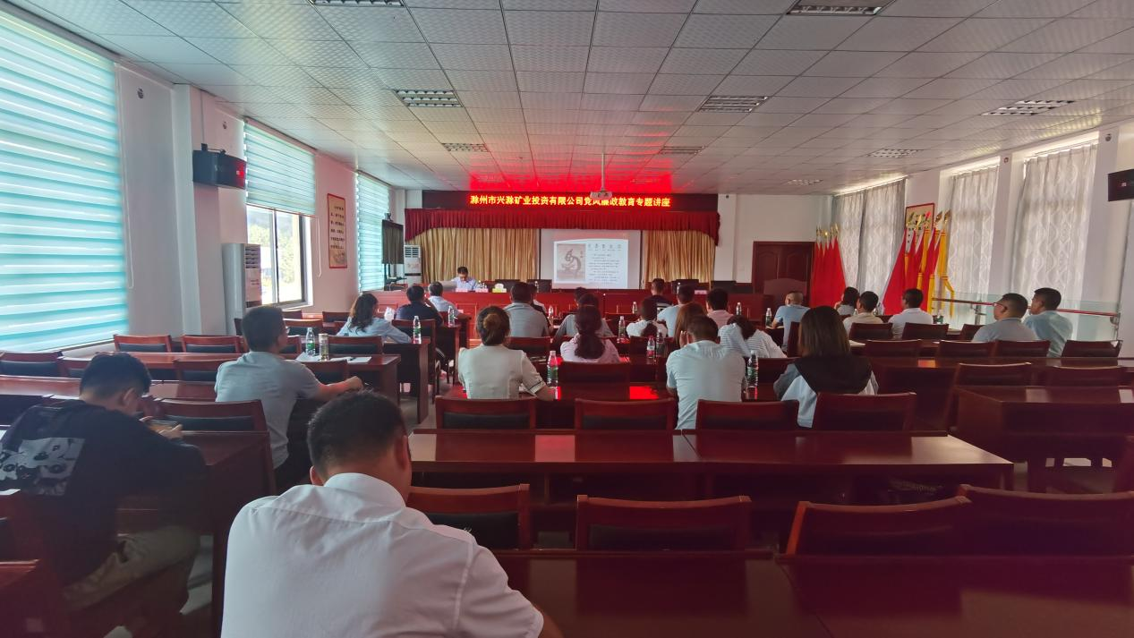 為進(jìn)一步推深做實(shí)黨史學(xué)習(xí)教育,切實(shí)加強(qiáng)公司黨風(fēng)廉政建設(shè)和反腐敗工作,促進(jìn)黨風(fēng)廉政教育在基層一線落地生根,7月23日,市礦投公司邀請市紀(jì)委監(jiān)委駐市財(cái)政局紀(jì)檢監(jiān)察組副組長張桂林赴興明礦業(yè)調(diào)研指導(dǎo)并作黨風(fēng)廉政教育專題講座。公司經(jīng)營層及相關(guān)工作人員約30余人聆聽了講座。
