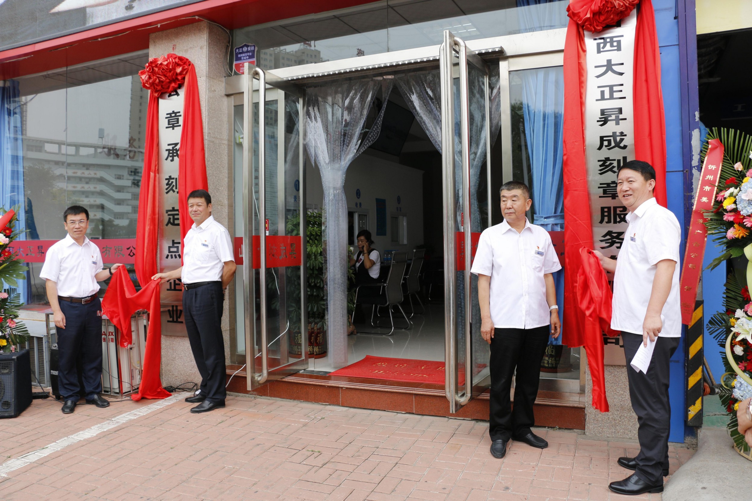 7月8日,集團公司旗下子公司山西大正昇成刻章服務有限公司揭牌儀式隆重舉行。集團公司黨委書記、董事長張躍生,黨委副書記、副總經理陳志平,黨委委員、副總經理趙培宏,黨委委員、后勤服務中心主任邢春生共同為山西大正昇成刻章服務有限公司揭牌。