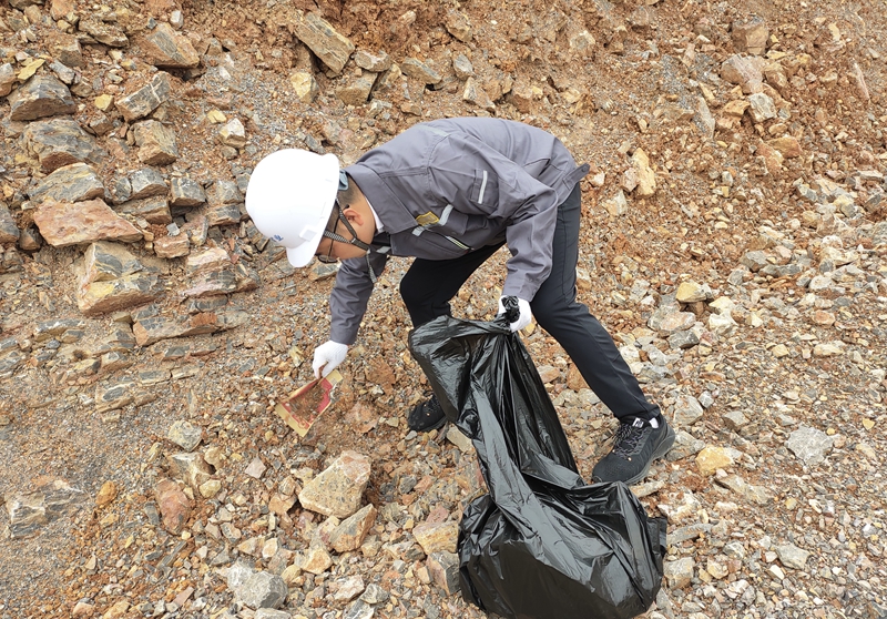活動(dòng)中,支部書(shū)記陳昌富作動(dòng)員講話。在黨員同志的帶領(lǐng)下,大家積極參與,共同行動(dòng),對(duì)臨時(shí)表土堆場(chǎng)播撒草籽,復(fù)綠面積達(dá)25畝;對(duì)礦區(qū)內(nèi)平臺(tái)、道路等位置的環(huán)境衛(wèi)生進(jìn)行集中整治,清理垃圾共20余袋。