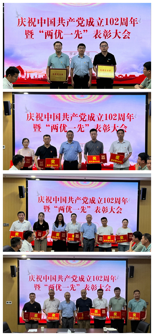 為慶祝建黨102周年,表彰先進、樹立榜樣,激勵廣大黨員干部振奮精神、凝心聚力,6月29日下午,市礦投集團召開慶祝中國共產(chǎn)黨成立102周年暨“兩優(yōu)一先”表彰大會。市礦投集團黨委班子成員、各支部書記、黨員代表參加會議。