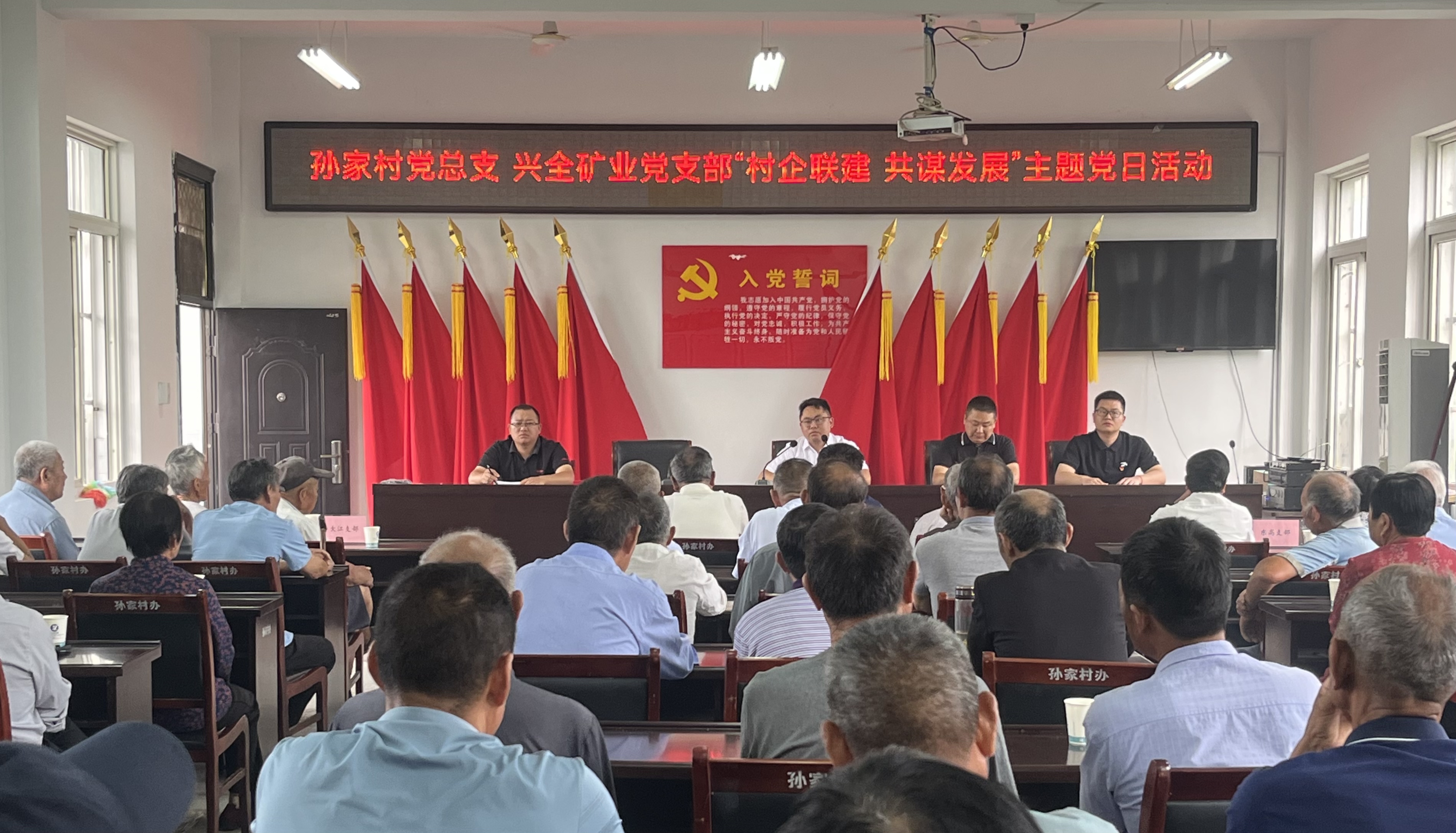 全體黨員緊握右拳,面向鮮紅的黨旗重溫了入黨誓詞;在全體黨員的見證下,孫家村黨總支書記趙陽、興全礦業(yè)黨支部副書記許登科向7位老黨員同志頒發(fā)了“光榮在黨50周年”紀(jì)念章,激勵廣大黨員進(jìn)一步堅定對黨的忠誠熱愛和為共產(chǎn)主義事業(yè)奮斗終身的理想信念。