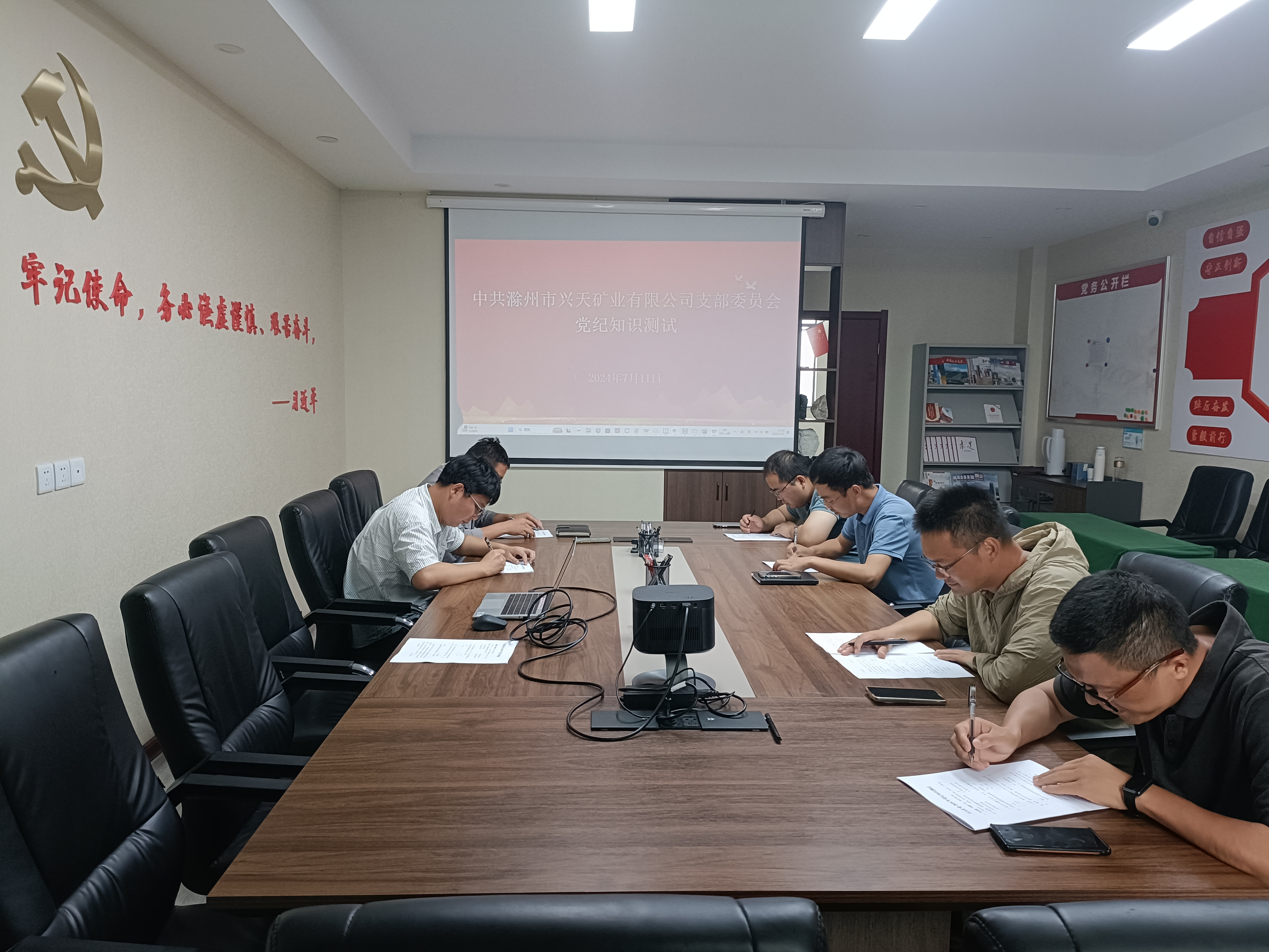 為推進(jìn)黨紀(jì)學(xué)習(xí)教育走深走實(shí),7月11日,興天礦業(yè)黨支部開展黨紀(jì)知識(shí)測試,全體黨員參加。