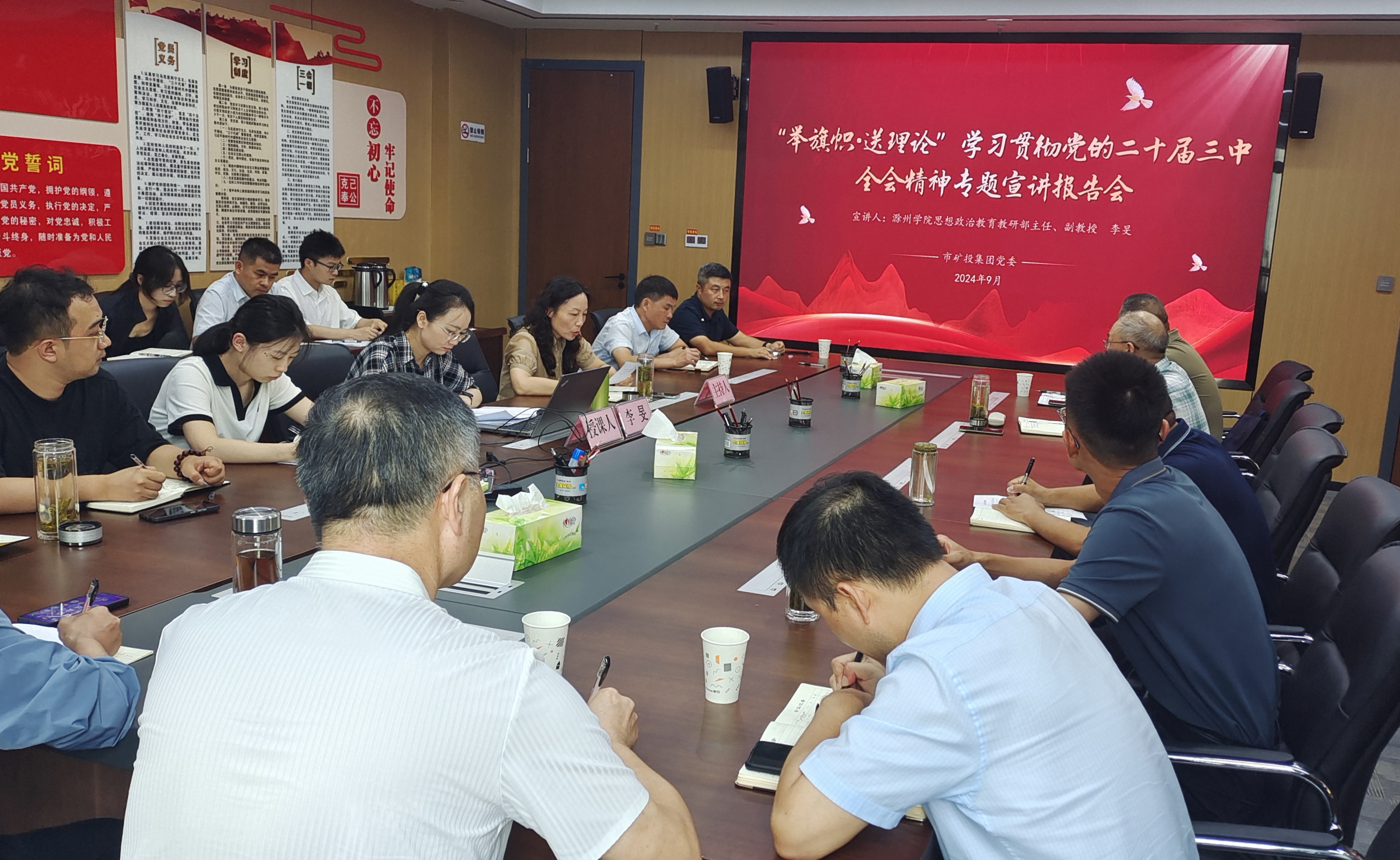 9月14日,“舉旗幟·送理論”學(xué)習(xí)貫徹黨的二十屆三中全會精神專題宣講活動在市礦投集團(tuán)舉行。滁州學(xué)院思想政治教育教研部主任、副教授李旻作專題宣講報(bào)告。市礦投集團(tuán)本部全體干部職工、各子公司負(fù)責(zé)人參加會議。