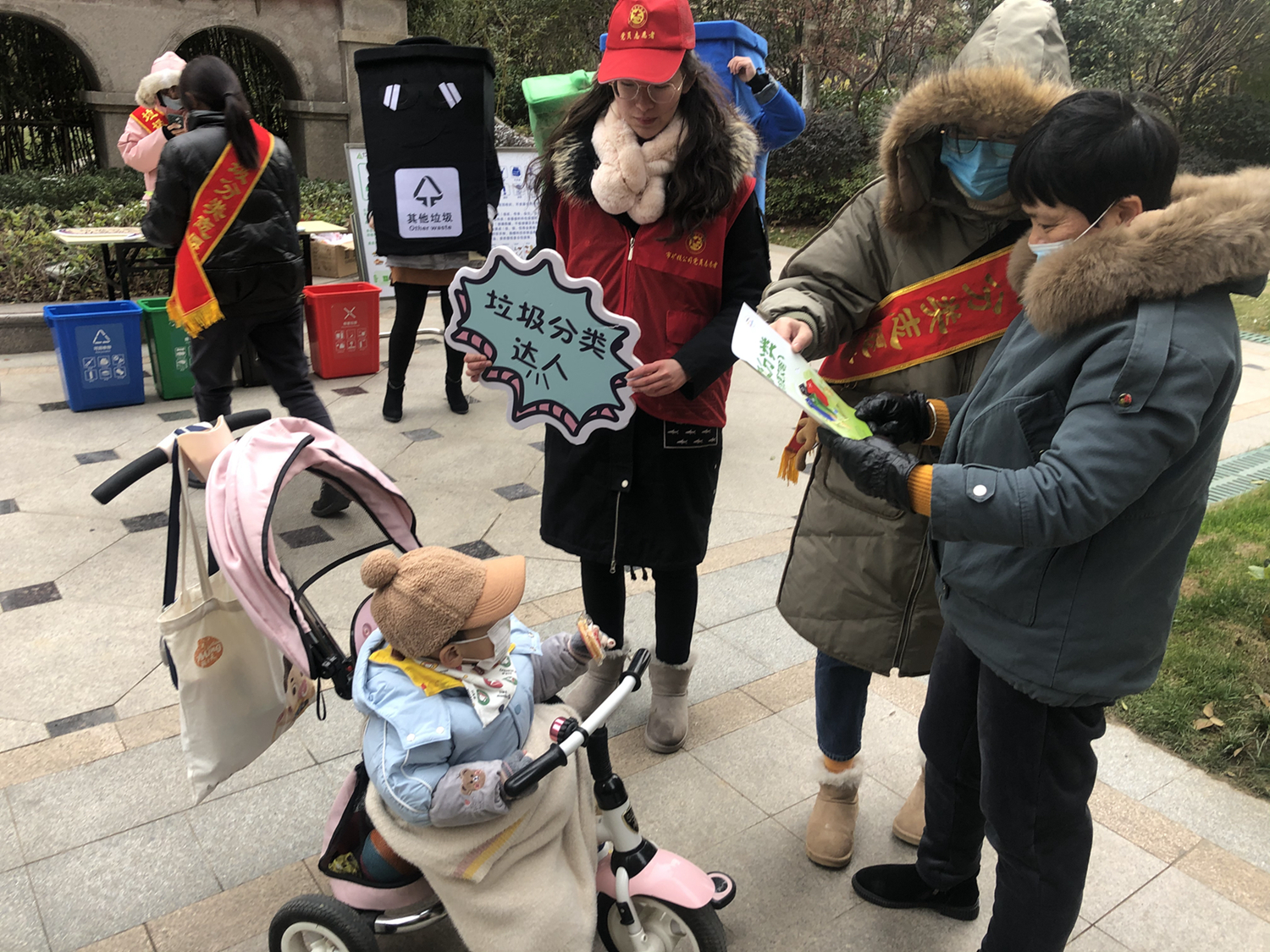 活動(dòng)中,志愿者們身穿“可回收物”、“廚余垃圾”、“有害垃圾”、“其他垃圾”四色玩偶服,通過向居民發(fā)放宣傳單頁、開展“垃圾分分樂”、“垃圾分類跳棋”游戲等方式,向其宣傳垃圾分類相關(guān)知識(shí)。活動(dòng)現(xiàn)場氣氛火熱,社區(qū)居民不畏嚴(yán)寒,紛紛從家中拿出廢舊電池、舊水銀溫度計(jì)等有害垃圾換取垃圾袋。
