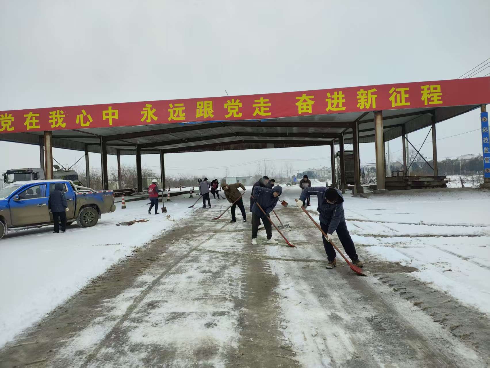風(fēng)雪之中,集團(tuán)各級黨組織迅速響應(yīng)。領(lǐng)導(dǎo)干部現(xiàn)場指揮,黨員骨干主動(dòng)帶頭,職工群眾積極參與。在集團(tuán)辦公區(qū)、各礦區(qū)主干道及設(shè)備集中區(qū)域,大家齊心協(xié)力,冒著嚴(yán)寒清掃積雪。重點(diǎn)對礦區(qū)關(guān)鍵通道、作業(yè)平臺和巡檢路線進(jìn)行了清理,及時(shí)為安全生產(chǎn)和職工出行開辟安全通道。