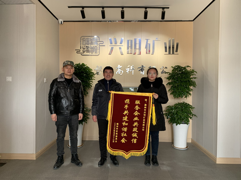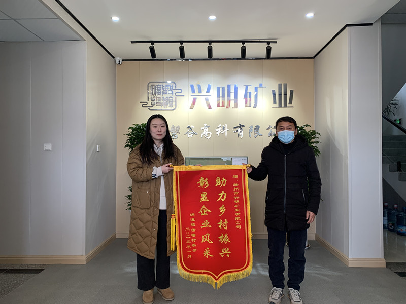 1月17日,澗溪鎮(zhèn)姚郭村、蒲塘村、九塘村村委會負(fù)責(zé)人將三面錦旗送至滁州市興明礦業(yè)有限公司,感謝興明礦業(yè)在鄉(xiāng)村振興、村企聯(lián)建、助農(nóng)扶貧等方面做出的貢獻(xiàn)。
