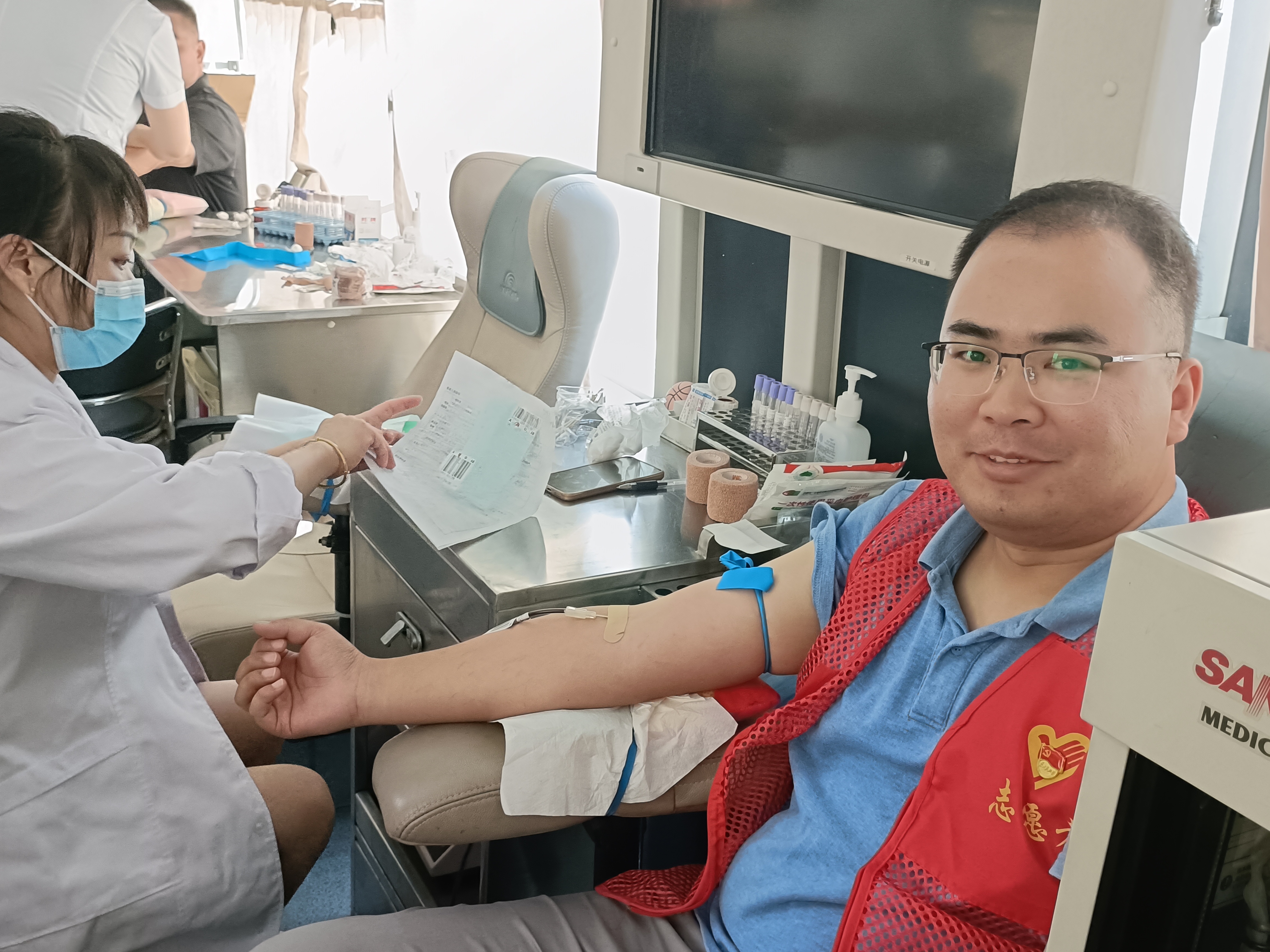 興天礦業(yè)黨支部黨員發(fā)揮帶頭作用,在工作人員的指導(dǎo)下,多名黨員志愿者在現(xiàn)場按次序進行登記、血壓測量、血液測試、采血等,據(jù)悉,部分黨員已是多次參加獻血。